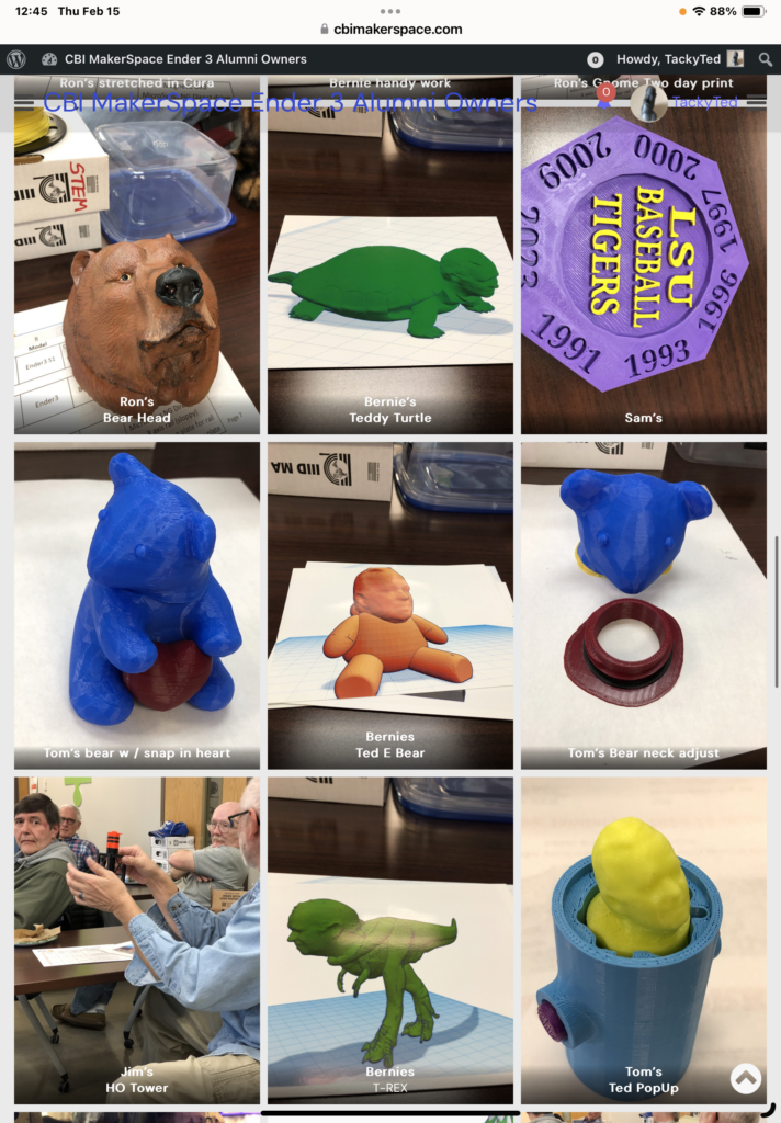 Another great showing of innovative 3D prints shared by the Alumni at the New Locaction.