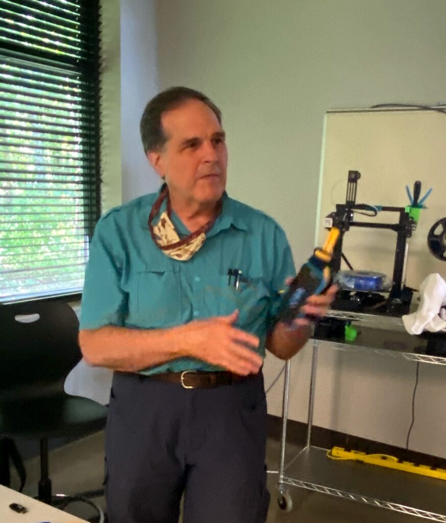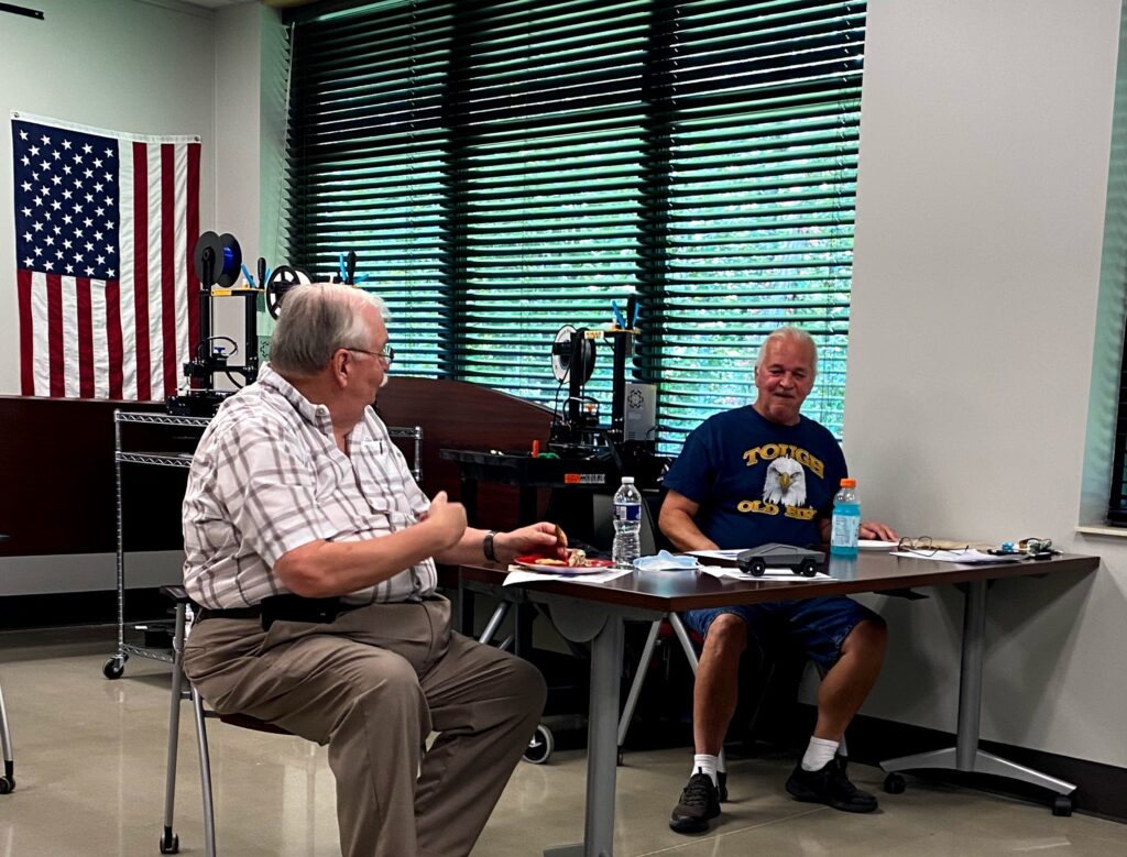 Clinic on bed prep and leveling using the STEM Enders. See workflows. Some discussion about 3D design classes in October. Next meeting topic will be direct drive and other Ender options. Attendees: Ted Mike Paul Glen Rod Robert Tom Pat Lory Bill. Some hung around for a demonstration of the Blade Rover prototype.